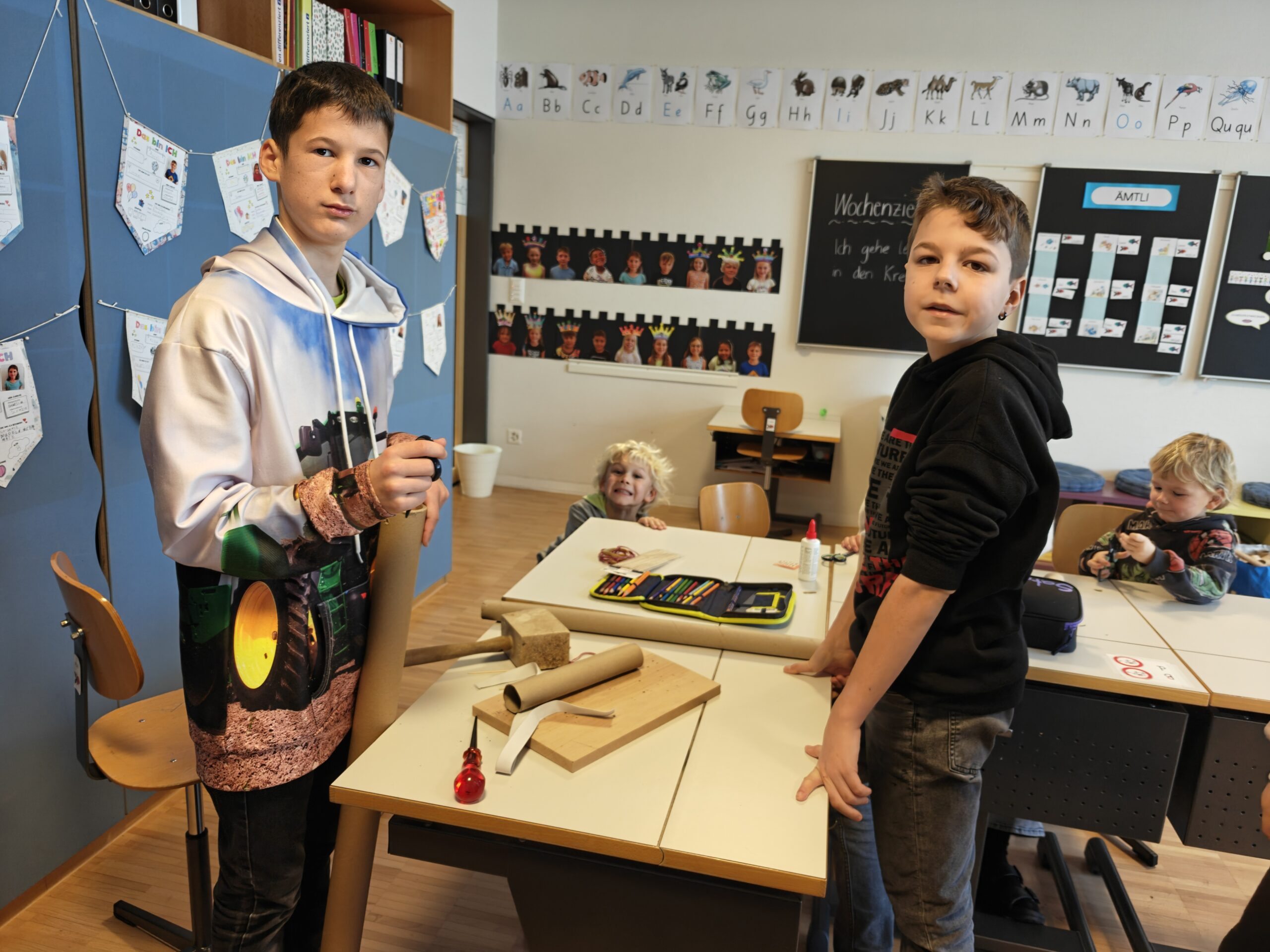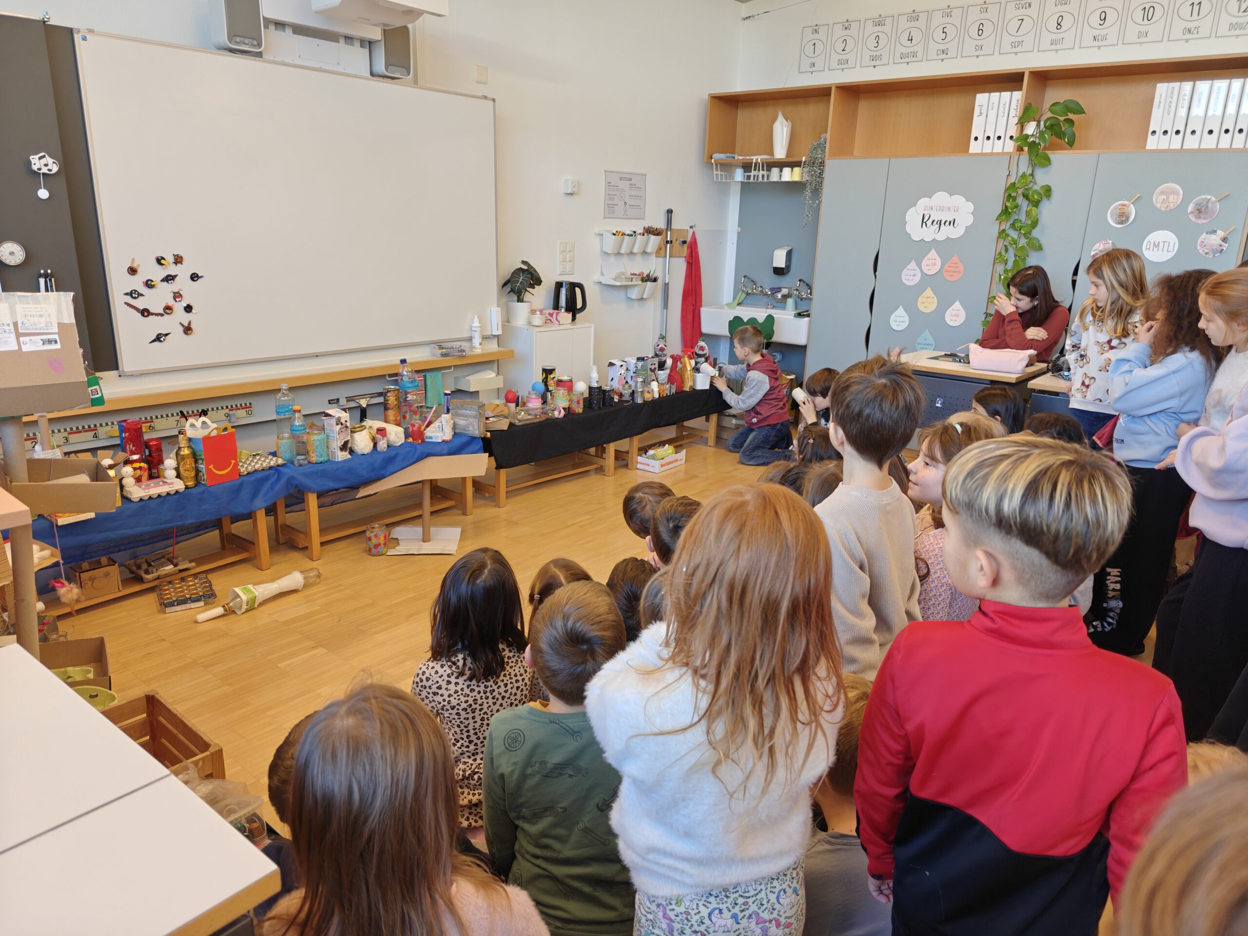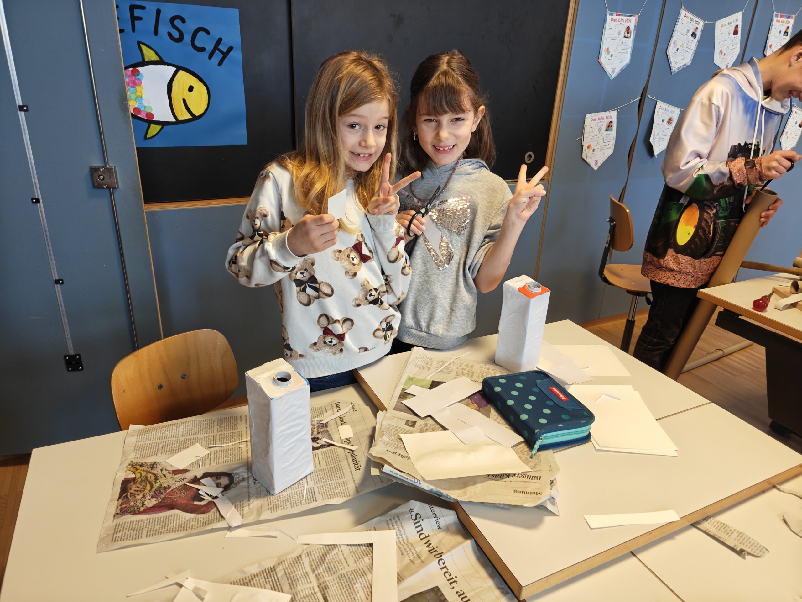Am ersten Forschertag setzten sich die Kinder während vier Lektionen intensiv mit dem Thema Mülltrennung und Upcycling auseinander. Zuerst lernten sie, welche Materialien es gibt und wie diese richtig getrennt werden. Ihr neues Wissen konnten sie anschliessend in einem coolen Kahoot unter Beweis stellen – mit viel Spass und grossem Engagement.