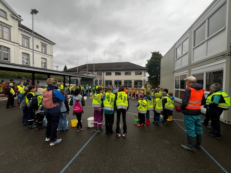 Von klein bis gross waren alle mit einem Eimer und einer Zange am Vormittag unterwegs. Viele Sachen kamen zusammen – von kleinen Zigarettenstummel über Schrauben, Boien und Velokörbli war alles dabei. Zwischendurch gab es für alle Beteiligten eine kleine Stärkung, die von der Gemeinde Kesswil gespendet wurde.