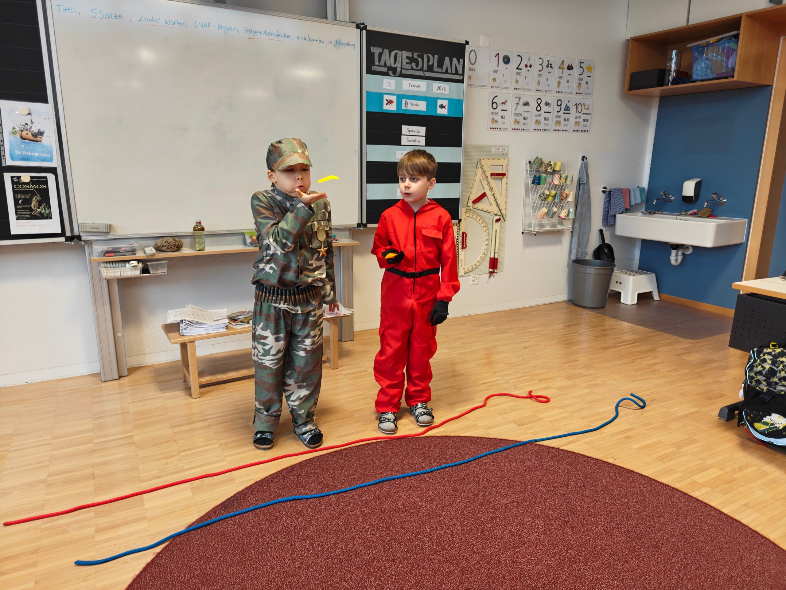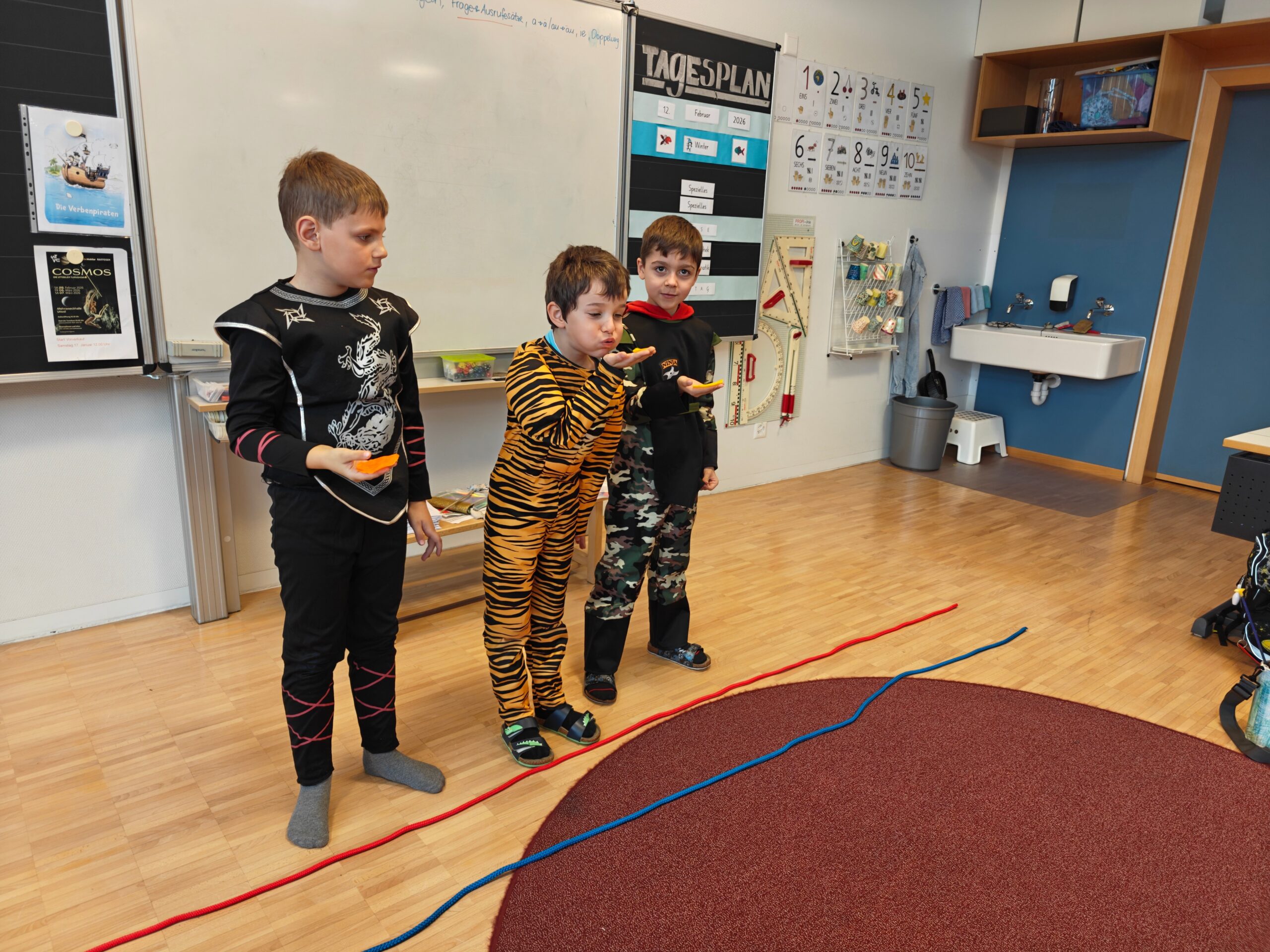 Am Schmutzigen Donnerstag verwandelte sich unsere Primarschule in eine farbenfrohe Fasnachtswelt. Alle Kinder durften verkleidet zur Schule kommen und sorgten schon beim Eintreffen für staunende Gesichter.