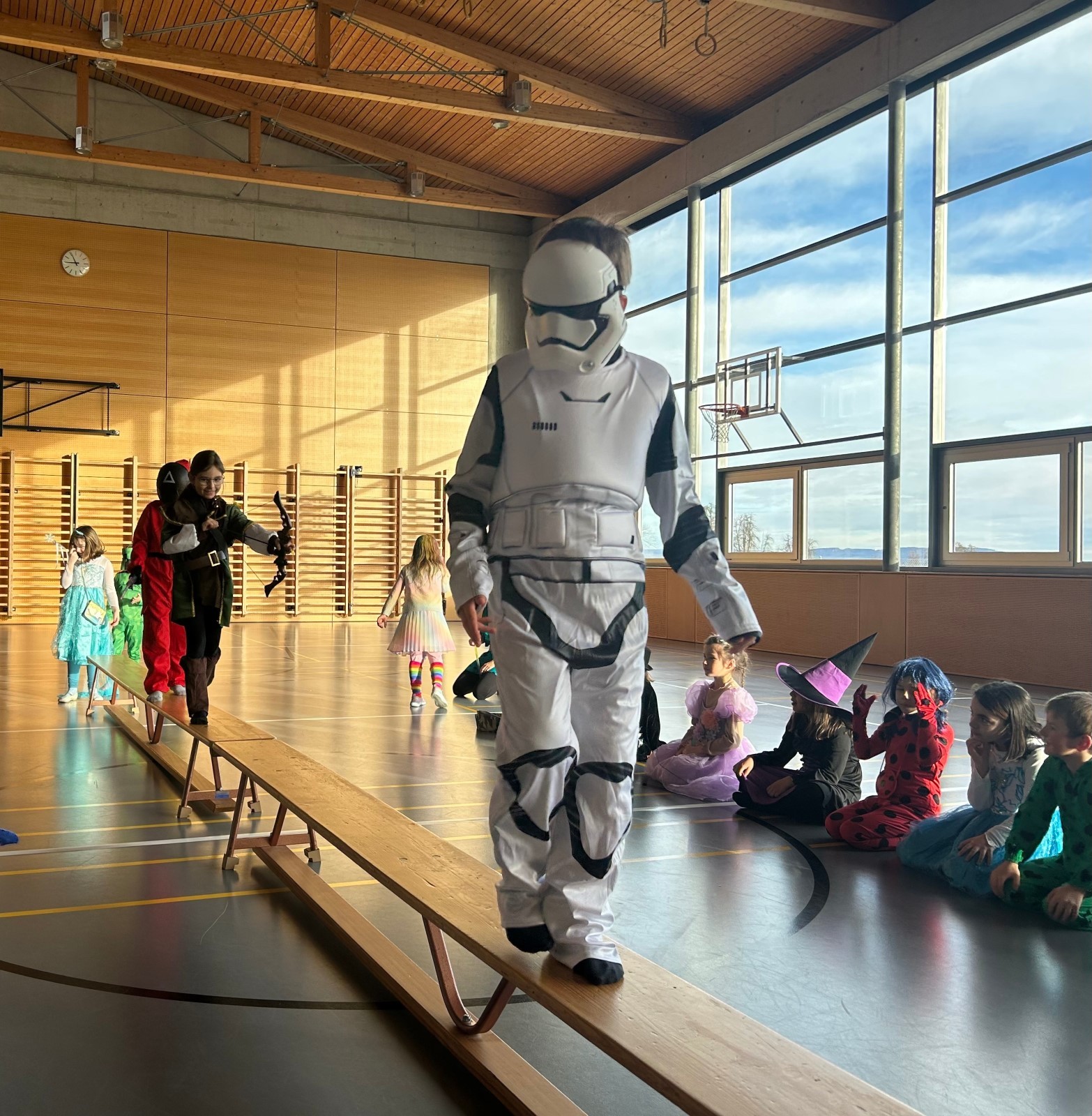 Die Kindergartenkinder sowie die 1./2. Klasse starteten gemeinsam in den Morgen. In der Turnhalle wurde gespielt, gelacht und gestaunt – und natürlich durfte jedes Kind sein Kostüm präsentieren. So hüpften freche Löwen neben eleganten Prinzessinnen, gefährliche Piraten begegneten kompetenten Ärztinnen und Ärzten, und auch Häschen, Katzen und Tiger wirbelten fröhlich durch die Halle. Die Vielfalt und Kreativität der Kostüme war beeindruckend.