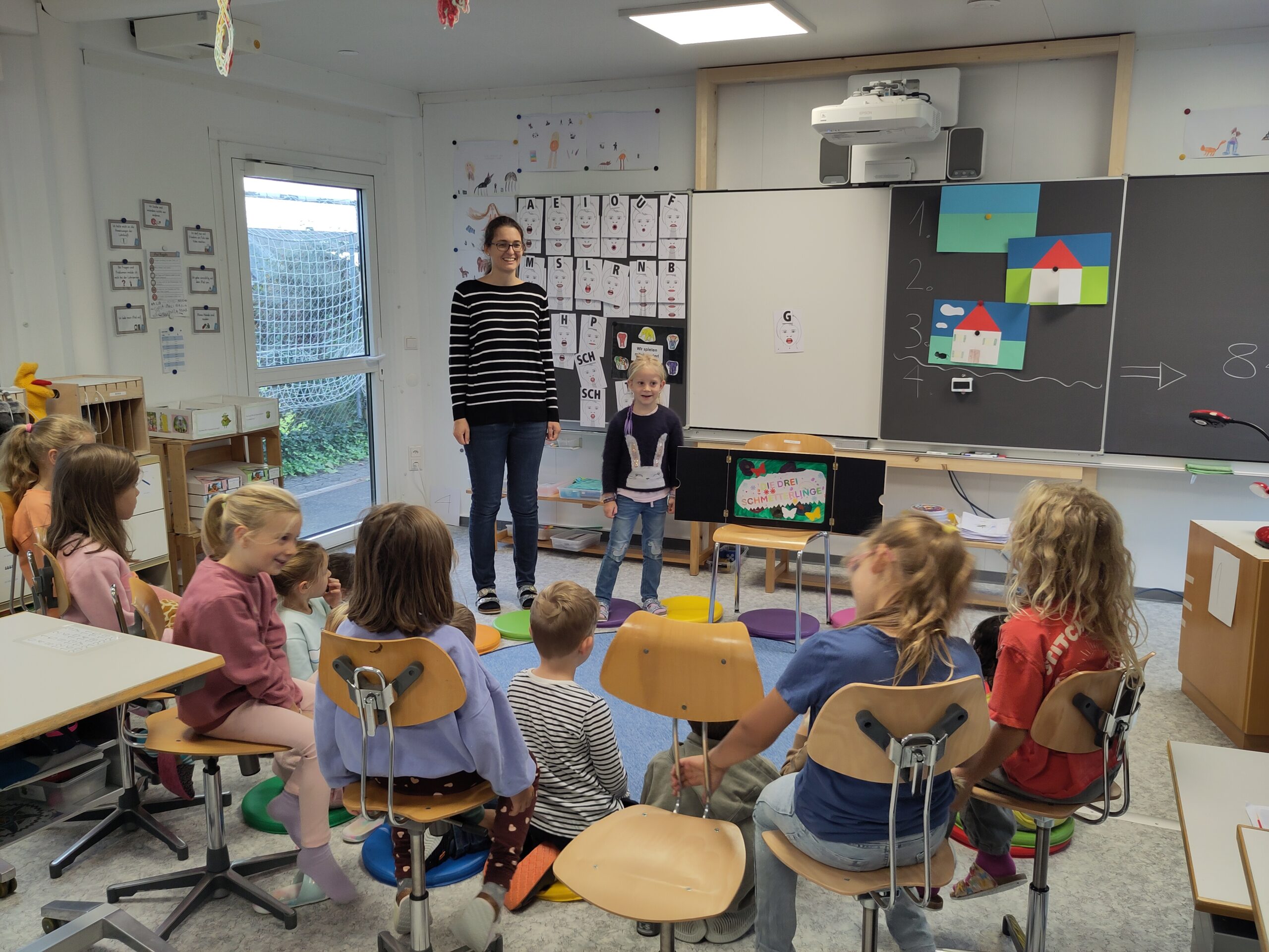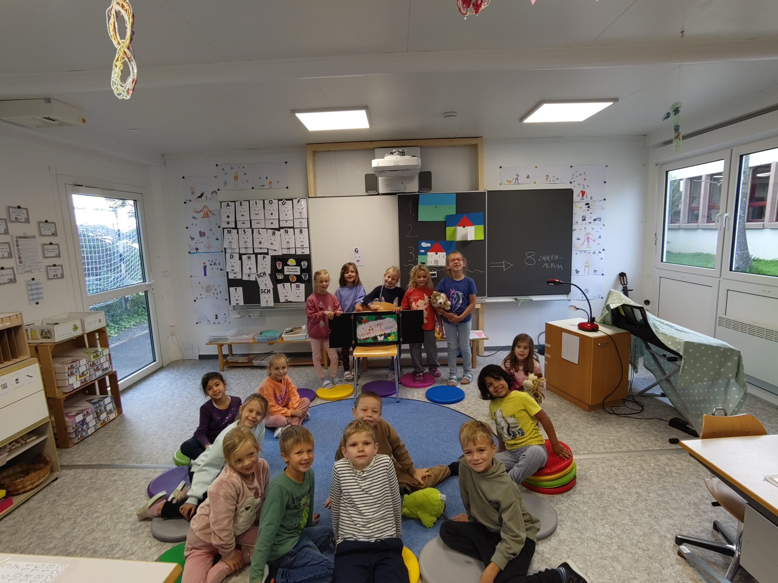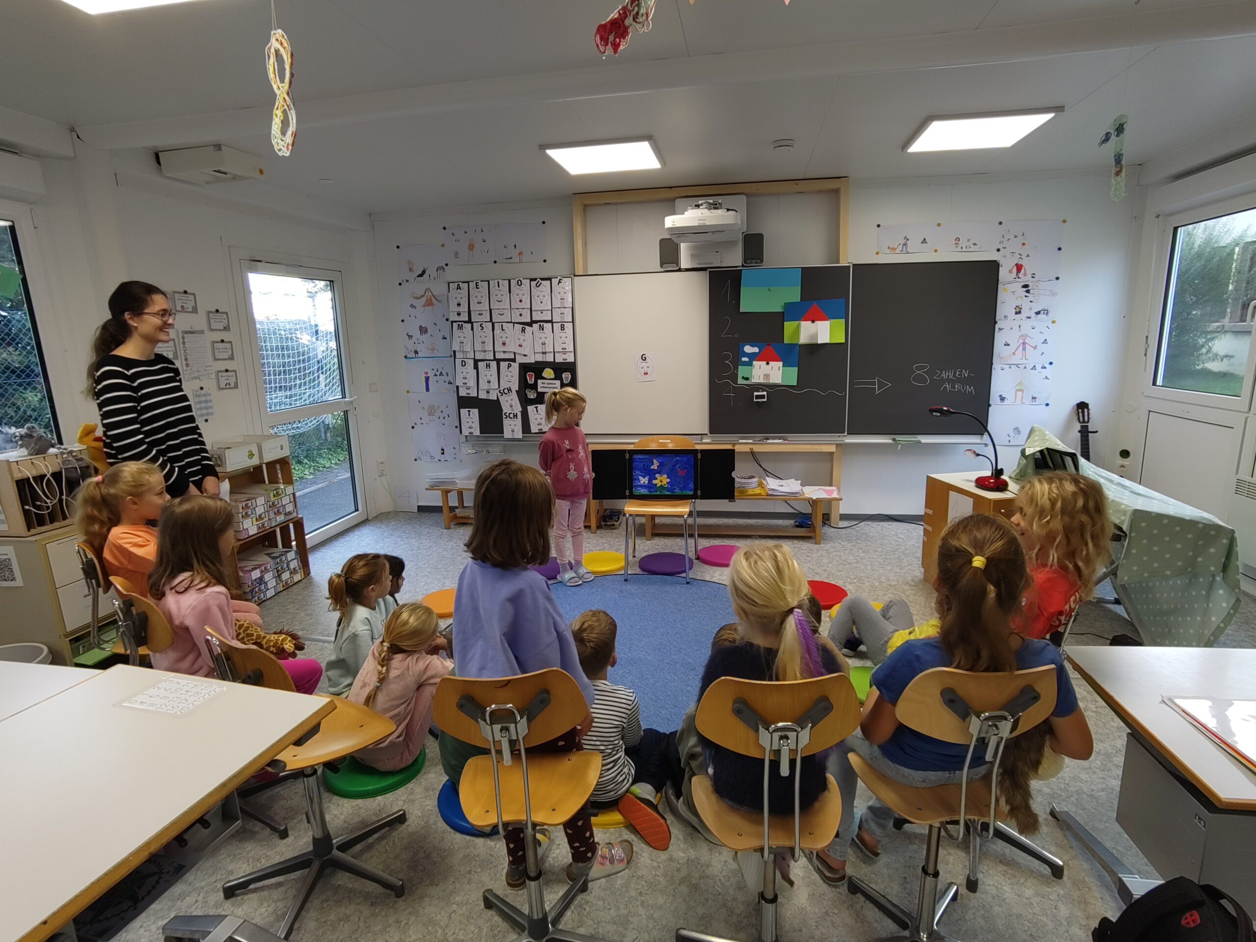 Nach einem spannenden Geschichteneinstieg hat es fünf Kinder aus der 1. Klasse gepackt, gemeinsam eine eigene Geschichte im Rahmen des Ipsums zu zeichnen und schliesslich zu erzählen.