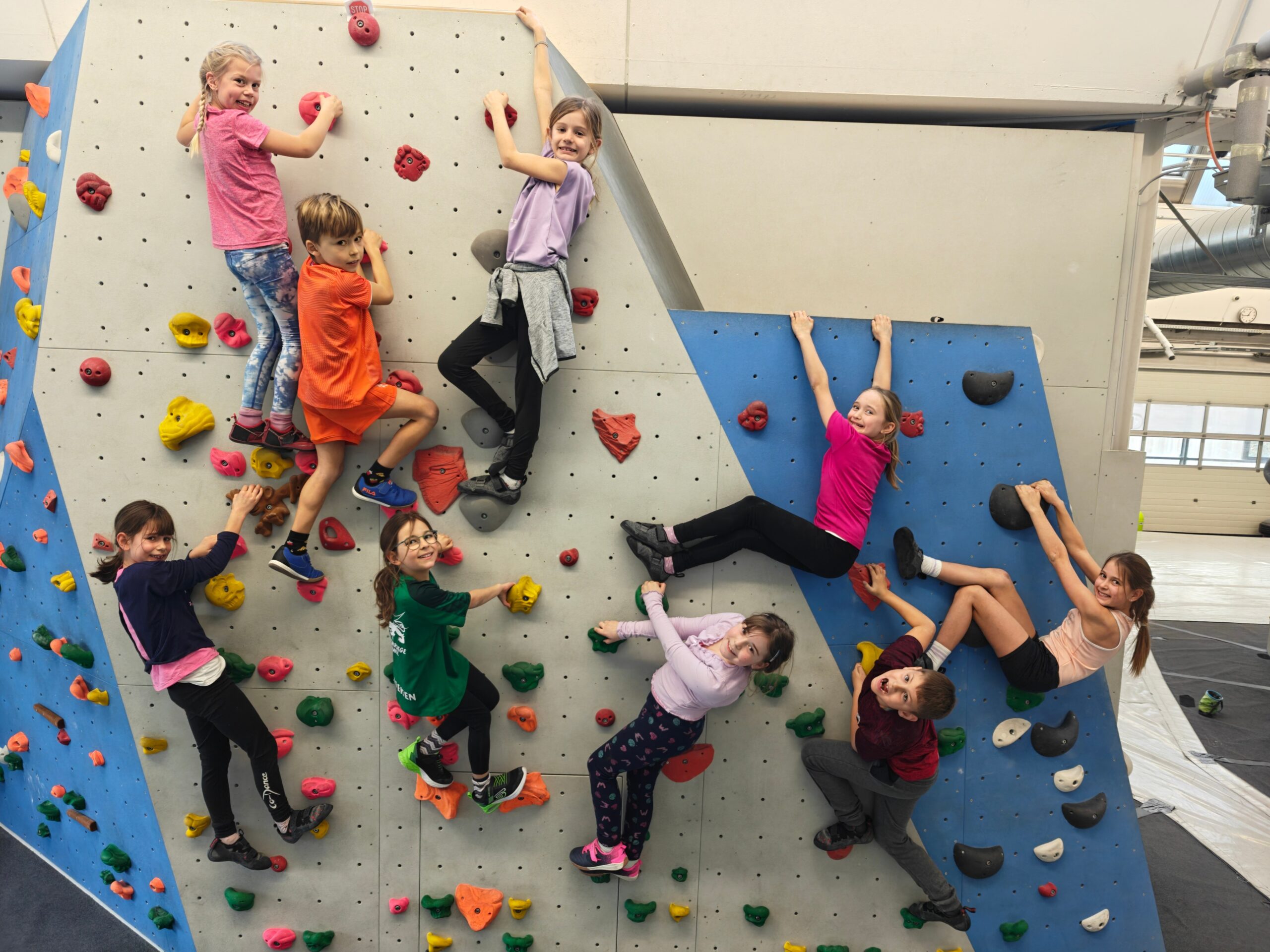 Auf die 2. Klasse wartete diese Woche ein ganz besonderer Ausflug. Gemeinsam machten wir uns auf den Weg nach St. Gallen – im Gepäck unsere Sportkleider und ganz viel Vorfreude. In der Boulderhalle angekommen, konnten wir es kaum erwarten, die Wände zu erobern.